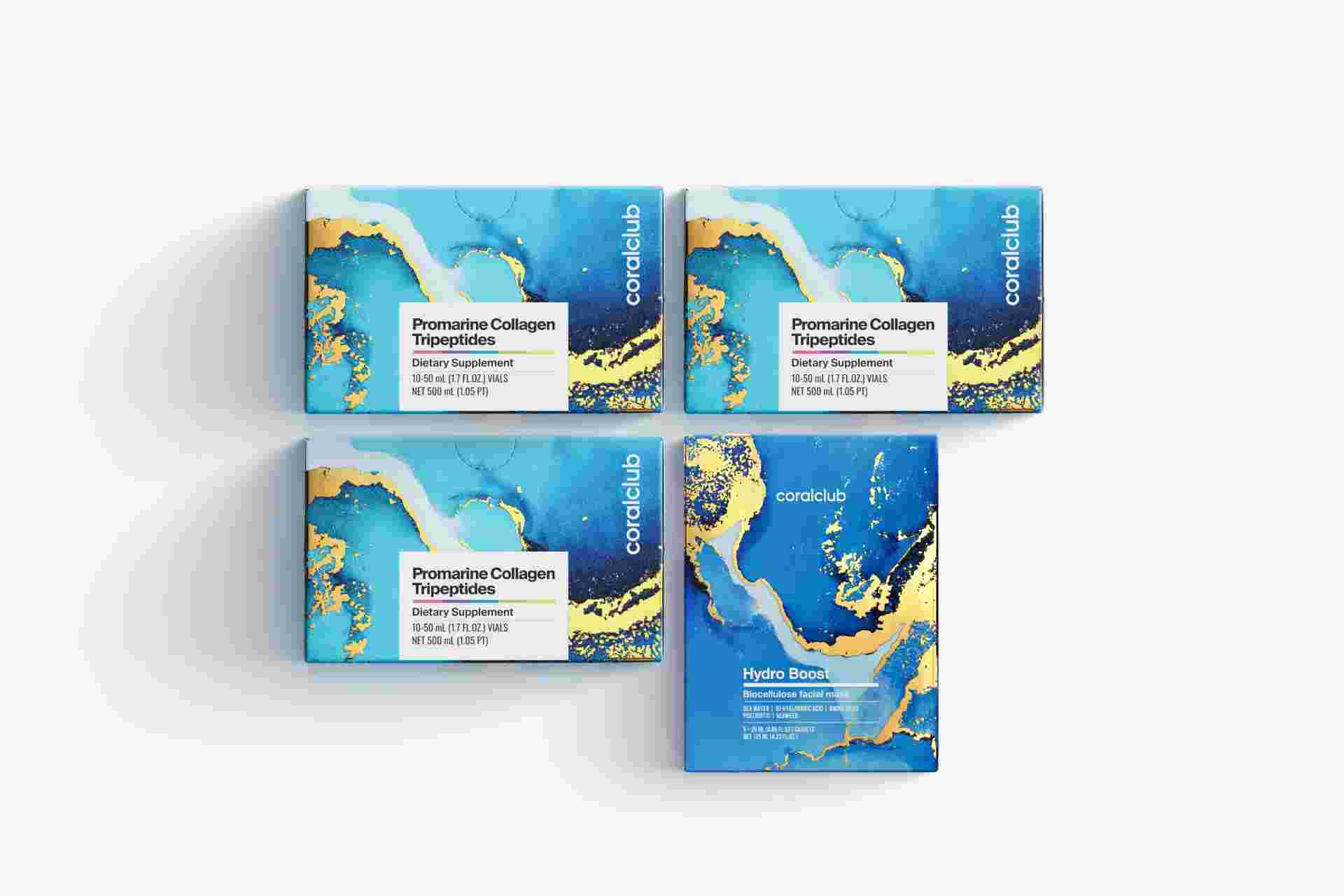 Rinkinys Promarine Collagen Tripeptides (1 mėnesio kursas) + Hydro Boost Biocellulose Facial Mask (5 maišeliai)